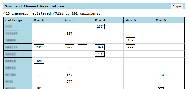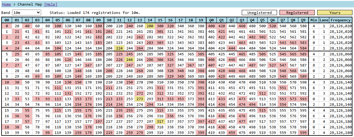 Every frequency band (eg 10m, 15m, 20m, etc) has a table of channels. Each number in the table is a channel. There are 600 channels ranging from number 0 to 599.