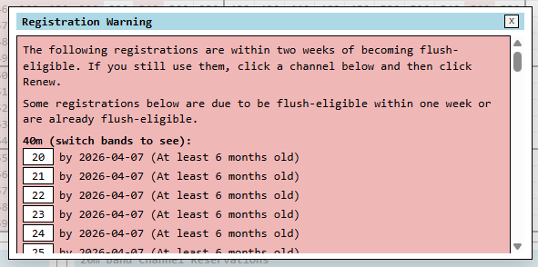 You get a red popup warning when you are 1 week away from a registration being eligible for being flushed.