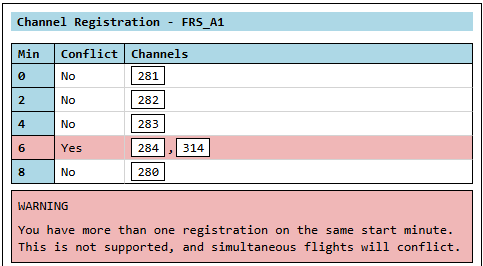 That means a maximum of 5 flights simultaneously, each with a different channel and different minute.