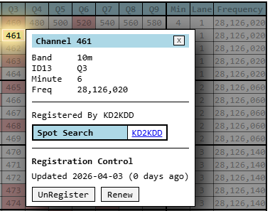 This popup allows you to Register or UnRegister use of a channel with a single click.