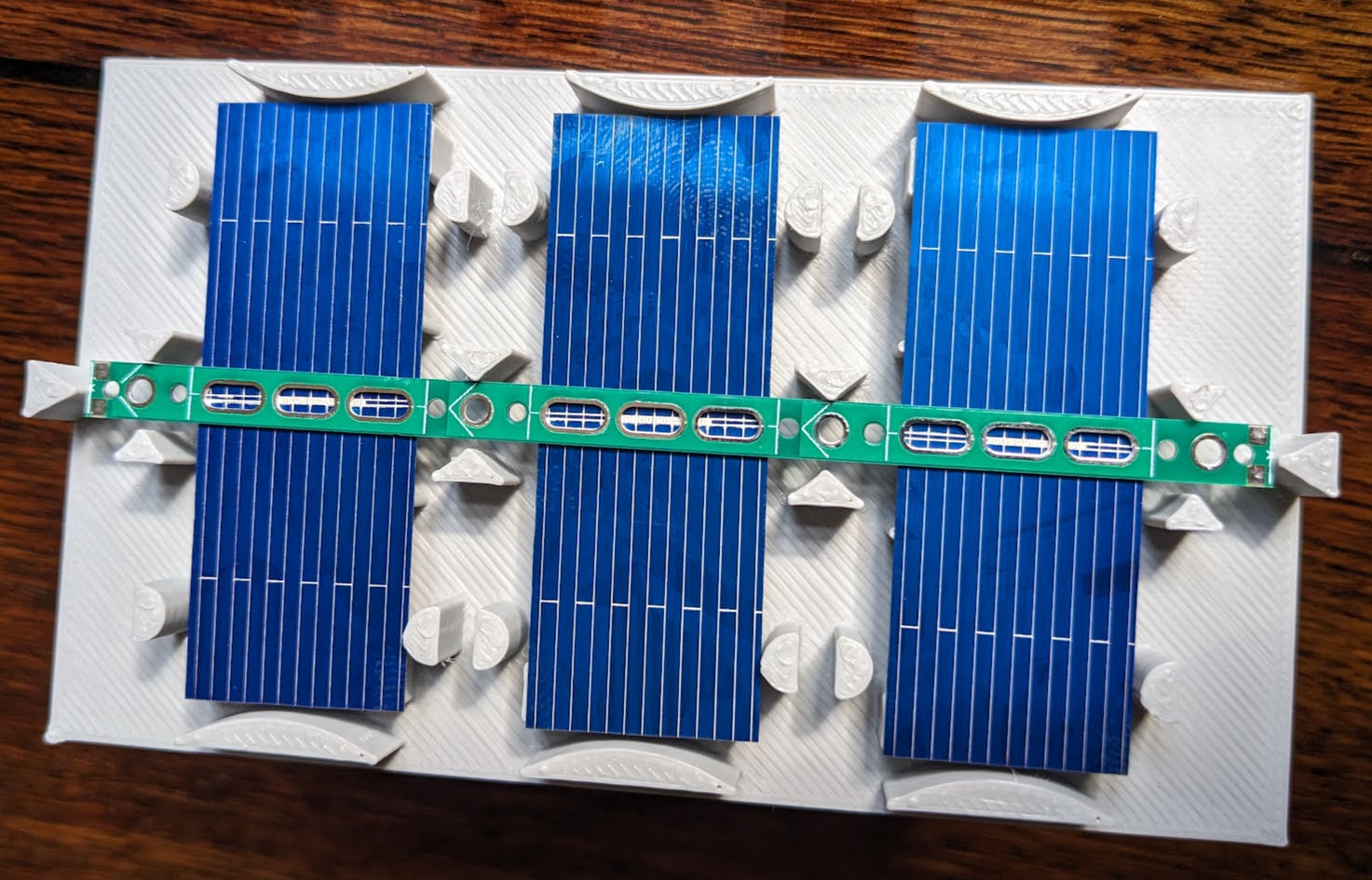 - You need 3 solar cells and 2 3-cell jig PCBs