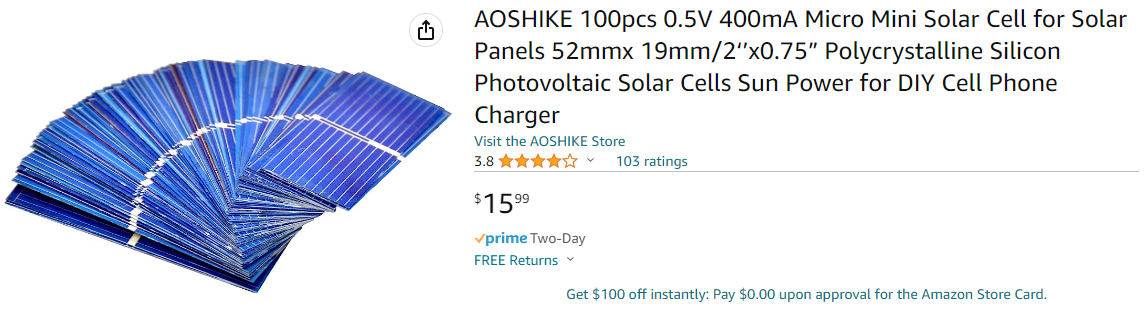 Total cost per solar panel: $1.27 (this does not include shipping, as this should be added onto a tracker order for maximum savings).