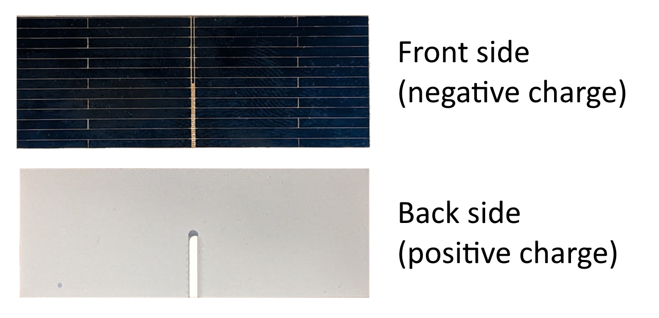 Solar cells have a positive and negative side, and produce 0.5v voltage apiece.