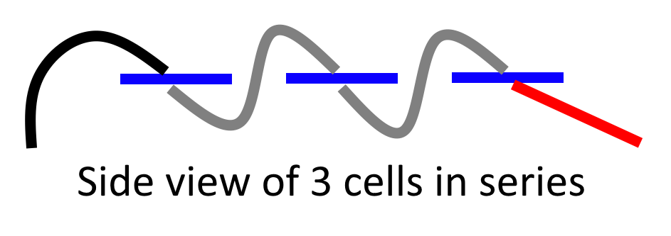 In this diagram, we see 6 cells assembled into a panel which has 3.0v output.