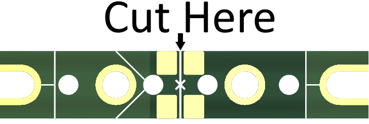 The PCB is marked with a special line with an "X" through it showing where to cut.