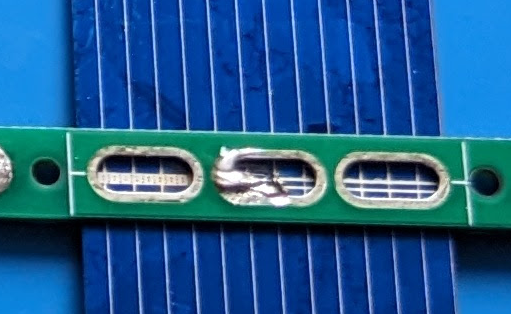 Once you have soldered the cells in place, solder the plated holes throughout the strip.