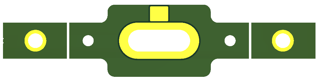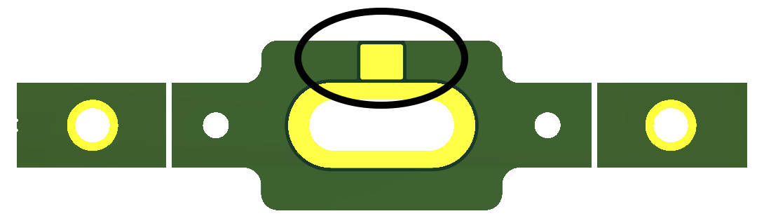 The center piece an exposed oval through-hole copper pad. This pad is not electrical, it is purely for mechanical connections to the tracker.